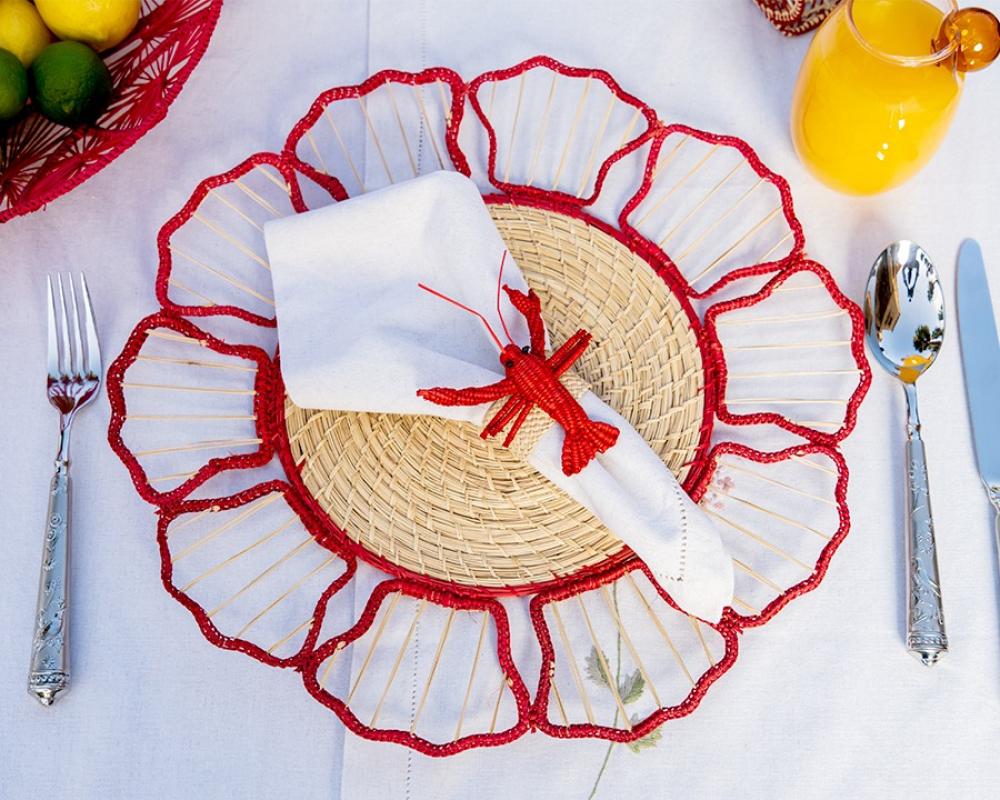 - توضع مفارش الطاولة بالأسفل وحلقات المنديل بالأعلى داخل البوكس بشكل جمالي .