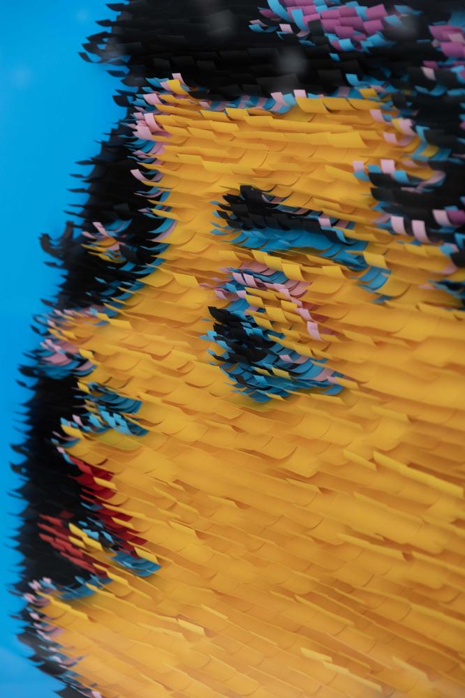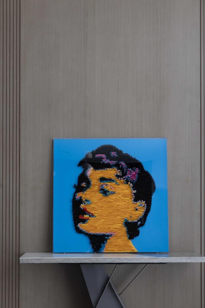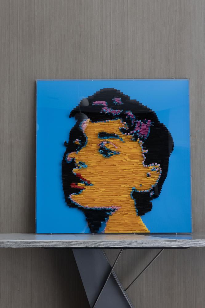 لوحة جدارية مصنوعة من قصاصات الورق المشكلة على هيئة أودري هيبورن بخلفية زرقاء و مغطاه بأكريليك لإضافة لمسة من الفخامة والجمال .
