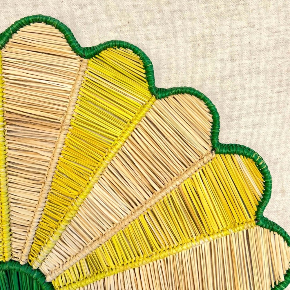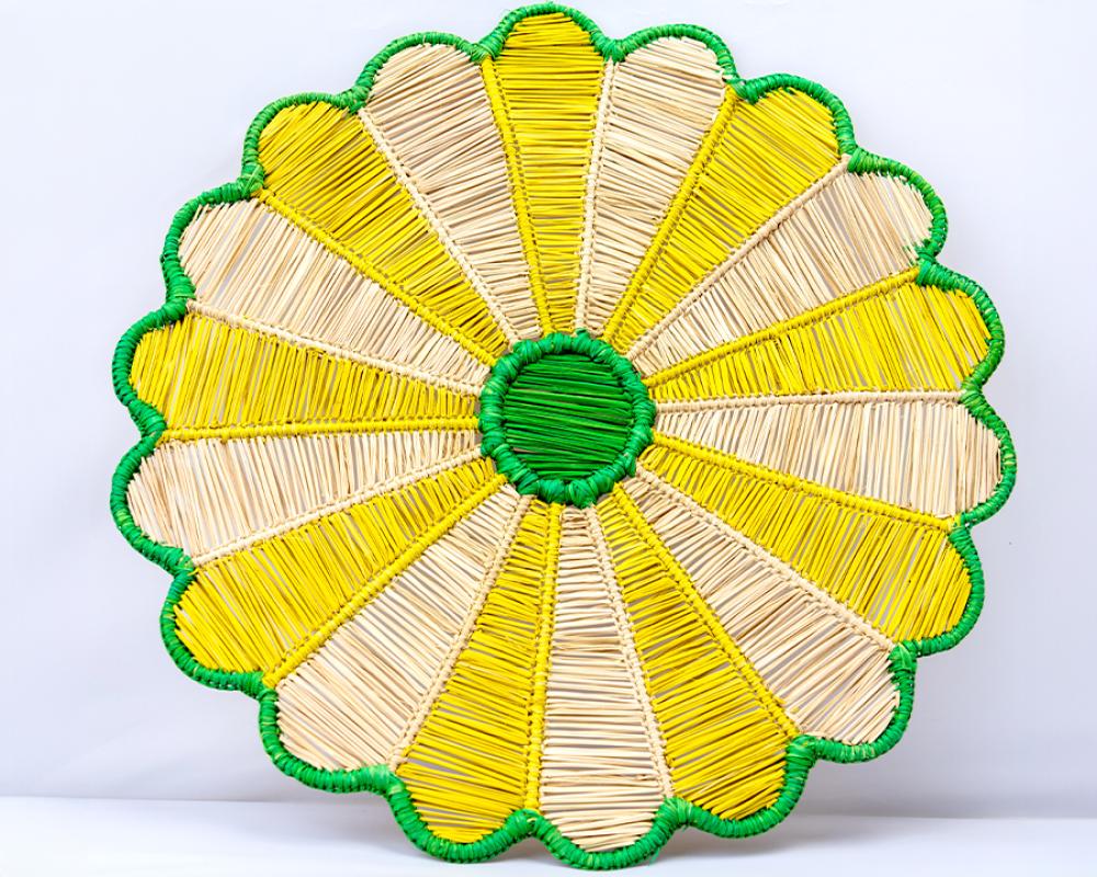 يتم تصنيع كل مفرش على حده من ألياف طبيعية ١٠٠٪ المصبوغة والمنسوجة يدوياً.