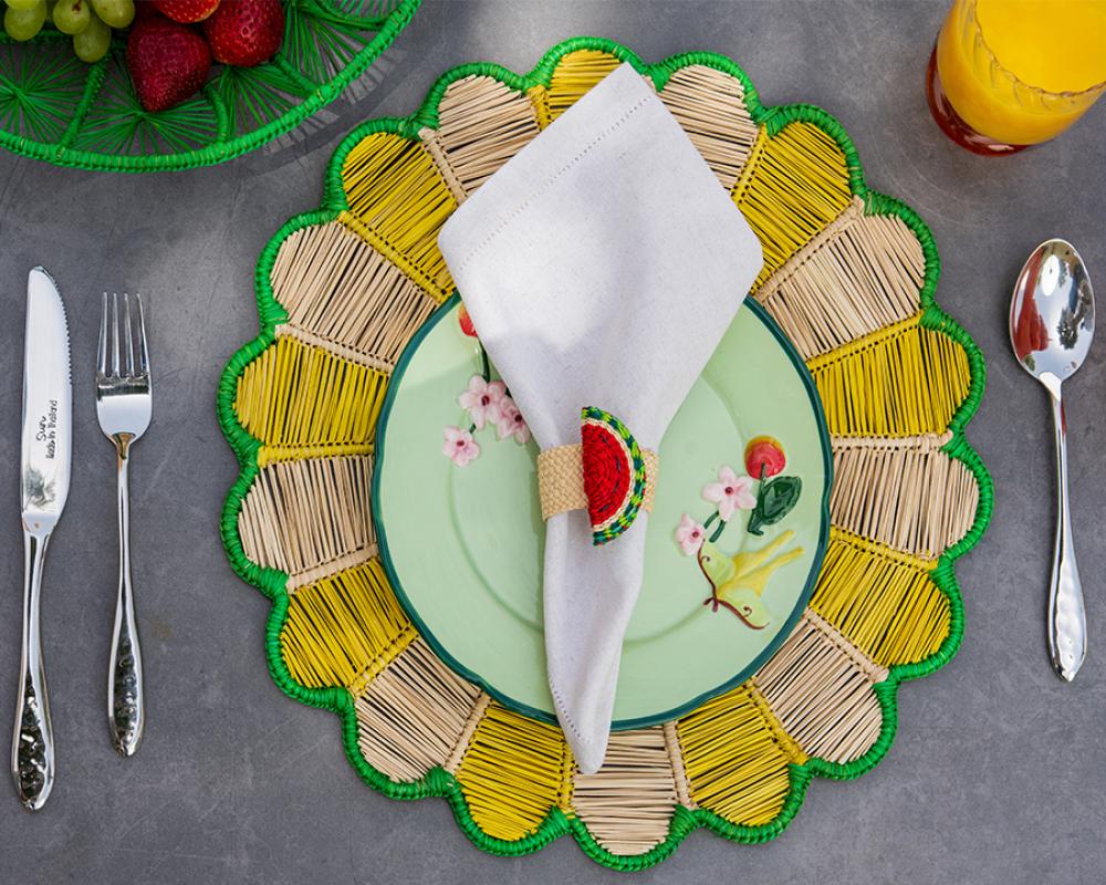حول طاولة طعامك باستخدام مفارش الطاولة من IN VILLA , هذه المفارش مصنوعة يدوياً على أيدي حرفيين مهره وهي تجسد قرونا من التقاليد التي تنسج قصص تراثهم في كل قطعة بألوانها النابضة بالحياة و أشكالها المميزة الفريدة.